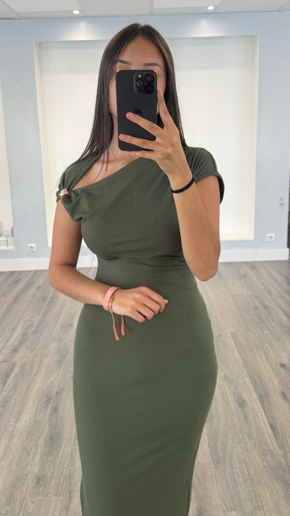 Robe sans manche avec une jolie broche doré au niveau de l'épaule.